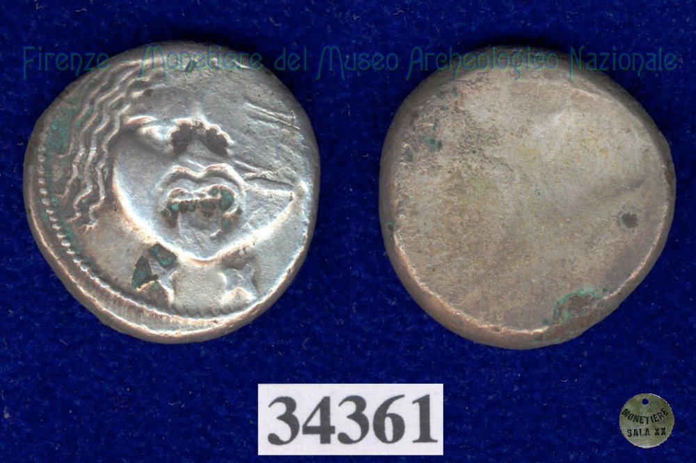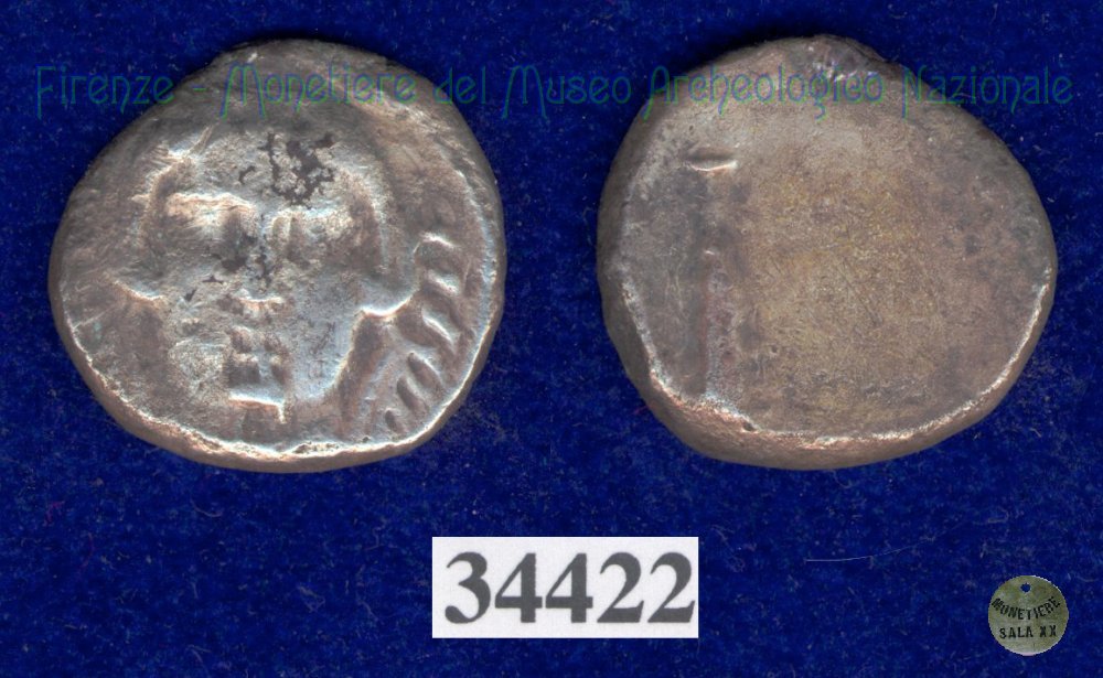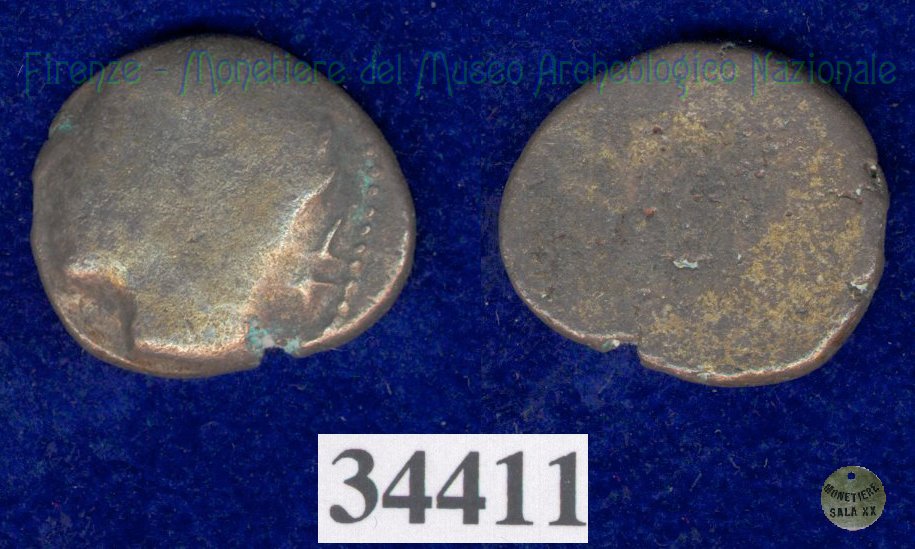 Testa di Metus / senza tipo (HN Italy 152) (400 a.C. - Pupluna) SNG Firenze, 355 Entrambe le facce | Monetiere Archeologico Firenze | Tue 13/04/10 - 16:32 | ||