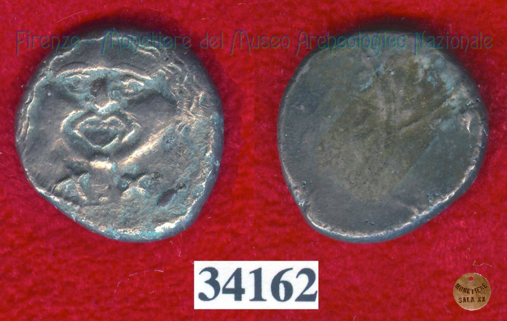 Gorgoneion/Quadrato incuso (HN Italy, 94) (500-450 a.C. - Pupluna?) SNG Firenze, 56 Entrambe le facce | Monetiere Archeologico Firenze | Mon 12/04/10 - 20:14 | ||