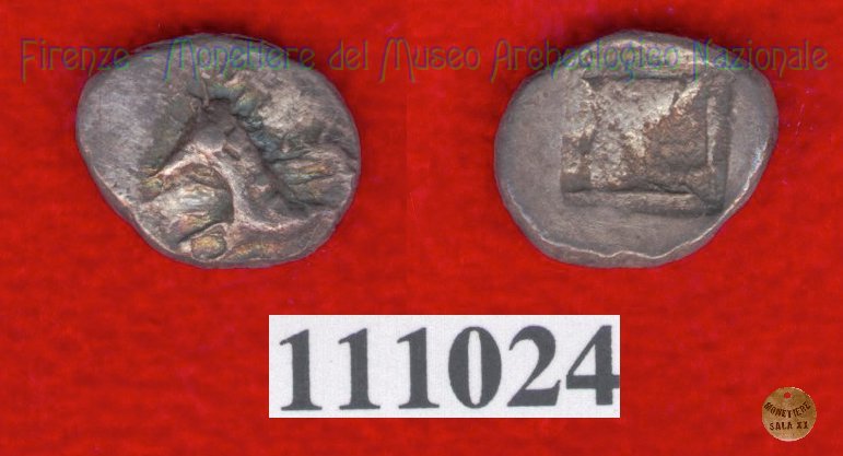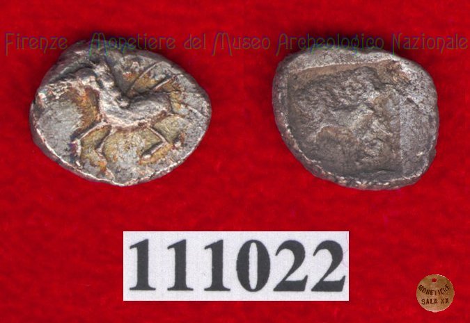 Hippalektryon a d./Quadrato inc. (HN Italy, 92-93) (500-450 a.C. - Pupluna?) SNG Firenze, 40 (B) Entrambe le facce | Monetiere Archeologico Firenze | Mon 12/04/10 - 16:10 | ||