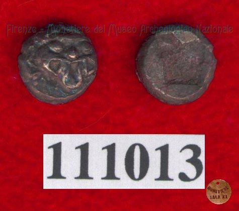 Gorgoneion/Quadrato incuso (HN Italy, 94) (500-450 a.C. - Pupluna?) SNG Firenze, 51 Entrambe le facce | Monetiere Archeologico Firenze | Mon 12/04/10 - 17:48 | ||