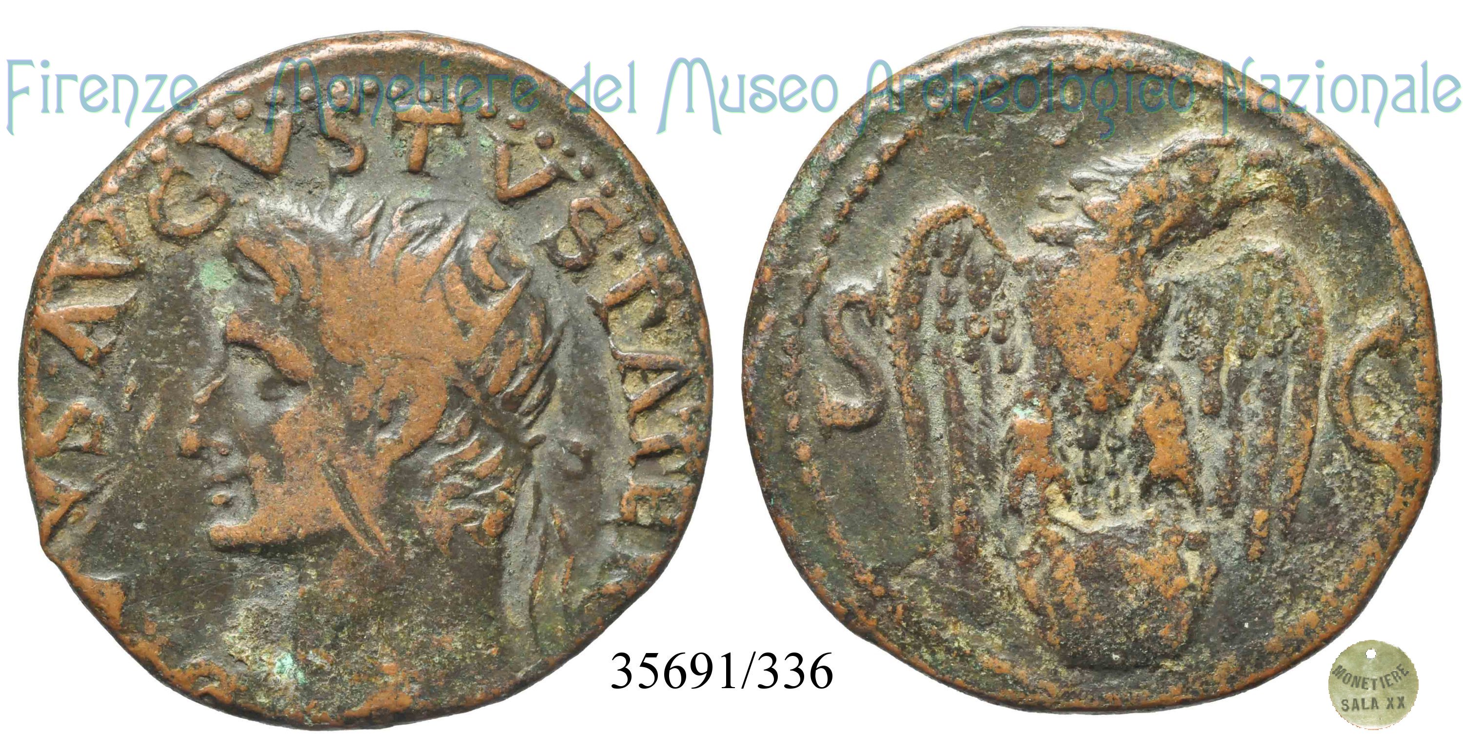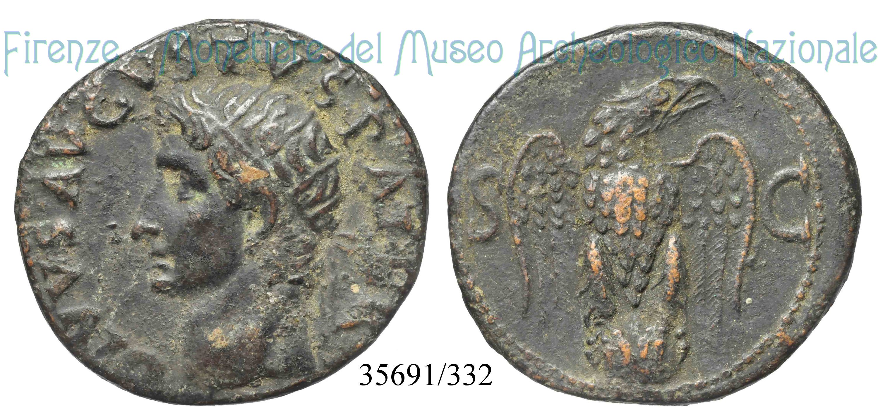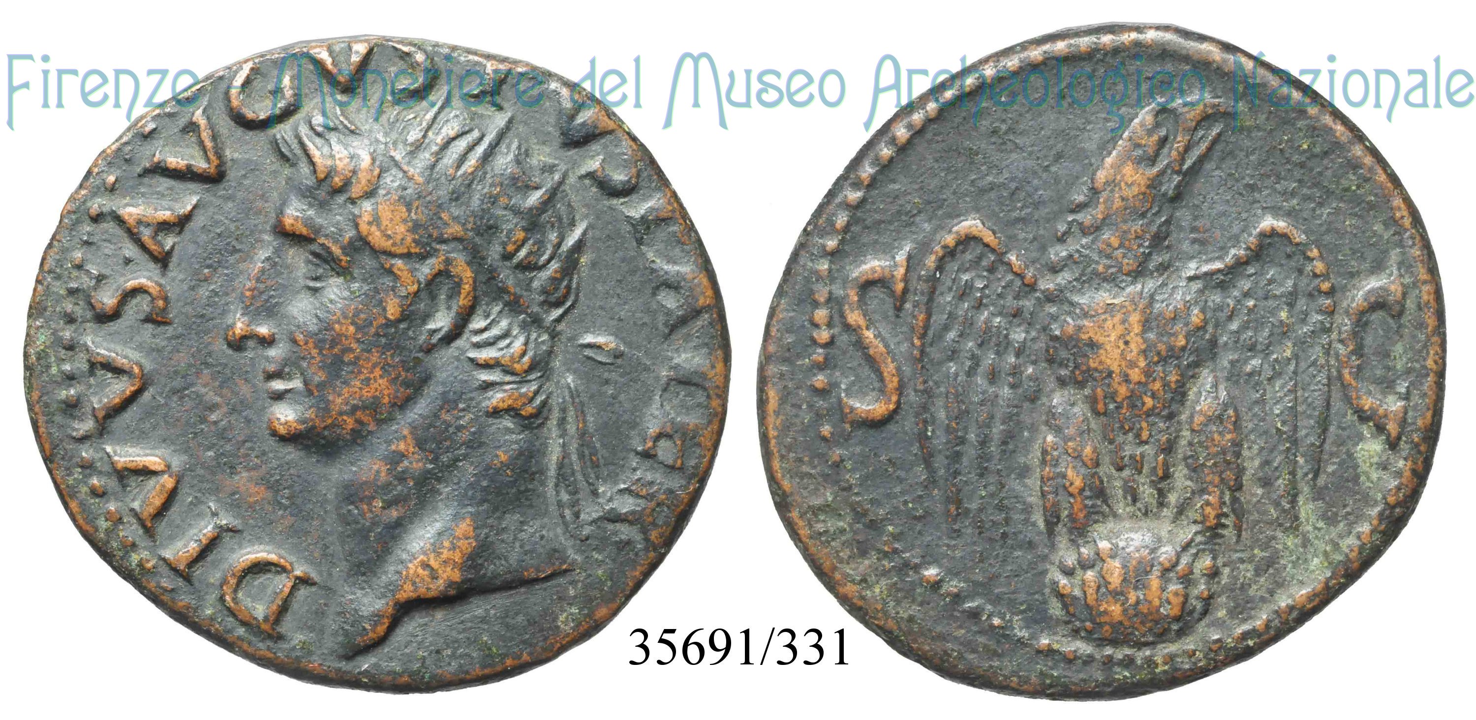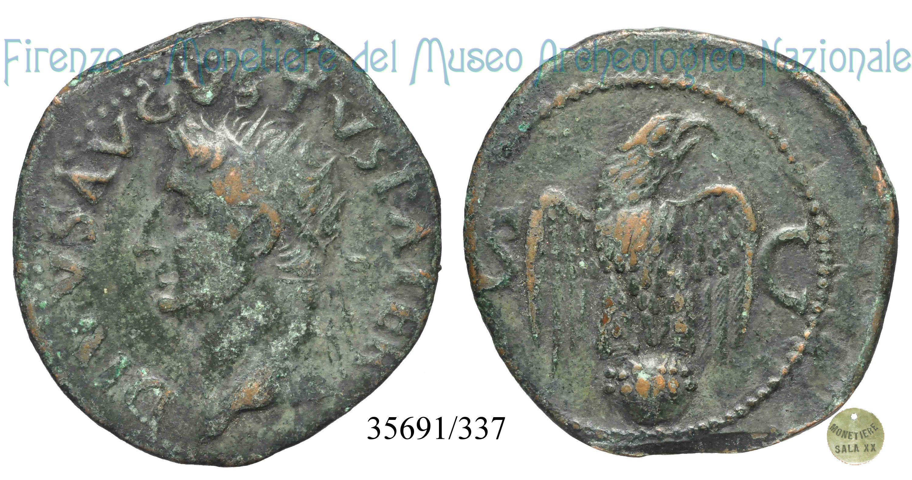 Aquila su globo - RIC 82 (22 d.C. - Roma) D/ DIVVS AVGVSTVS PATER R/ grande S C RIC I, 82 (= asse) (B) | Monetiere Archeologico Firenze | Sat 8/02/14 - 23:13 | ||