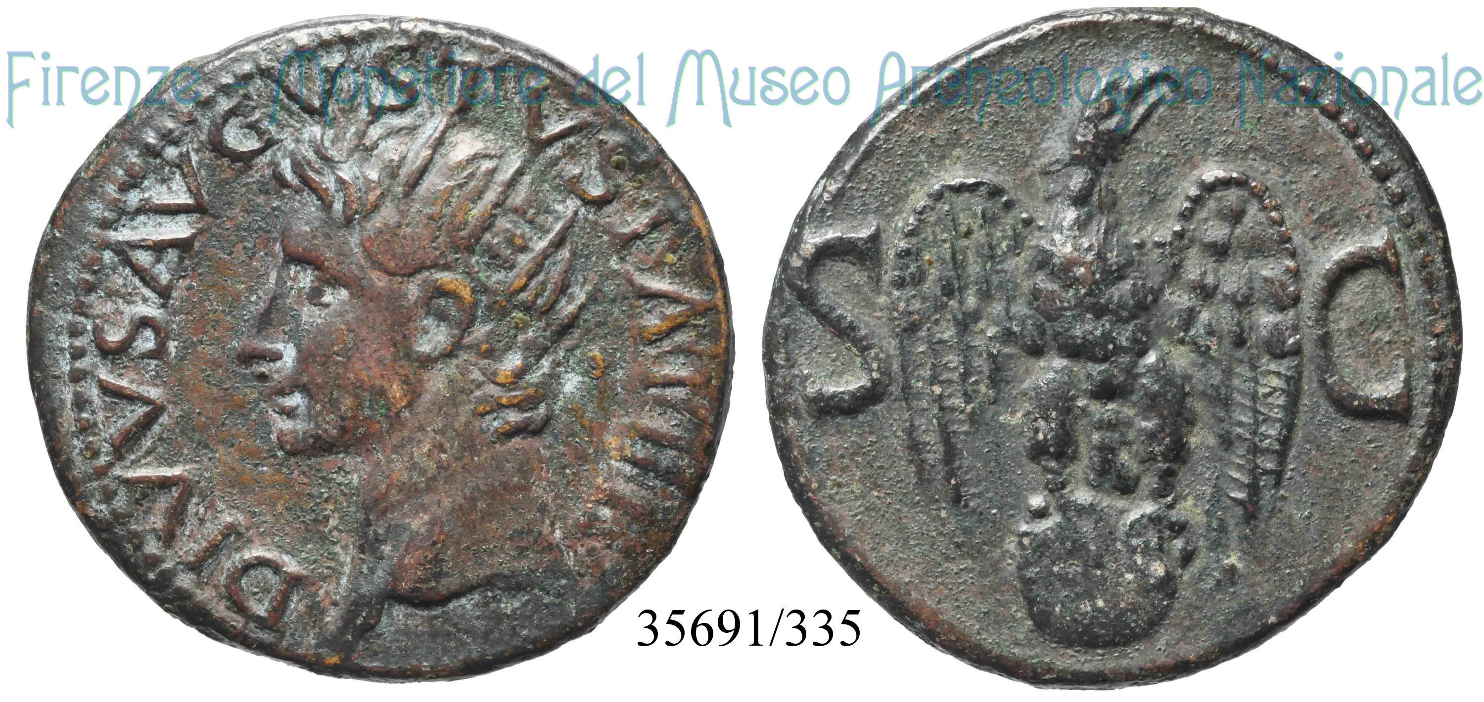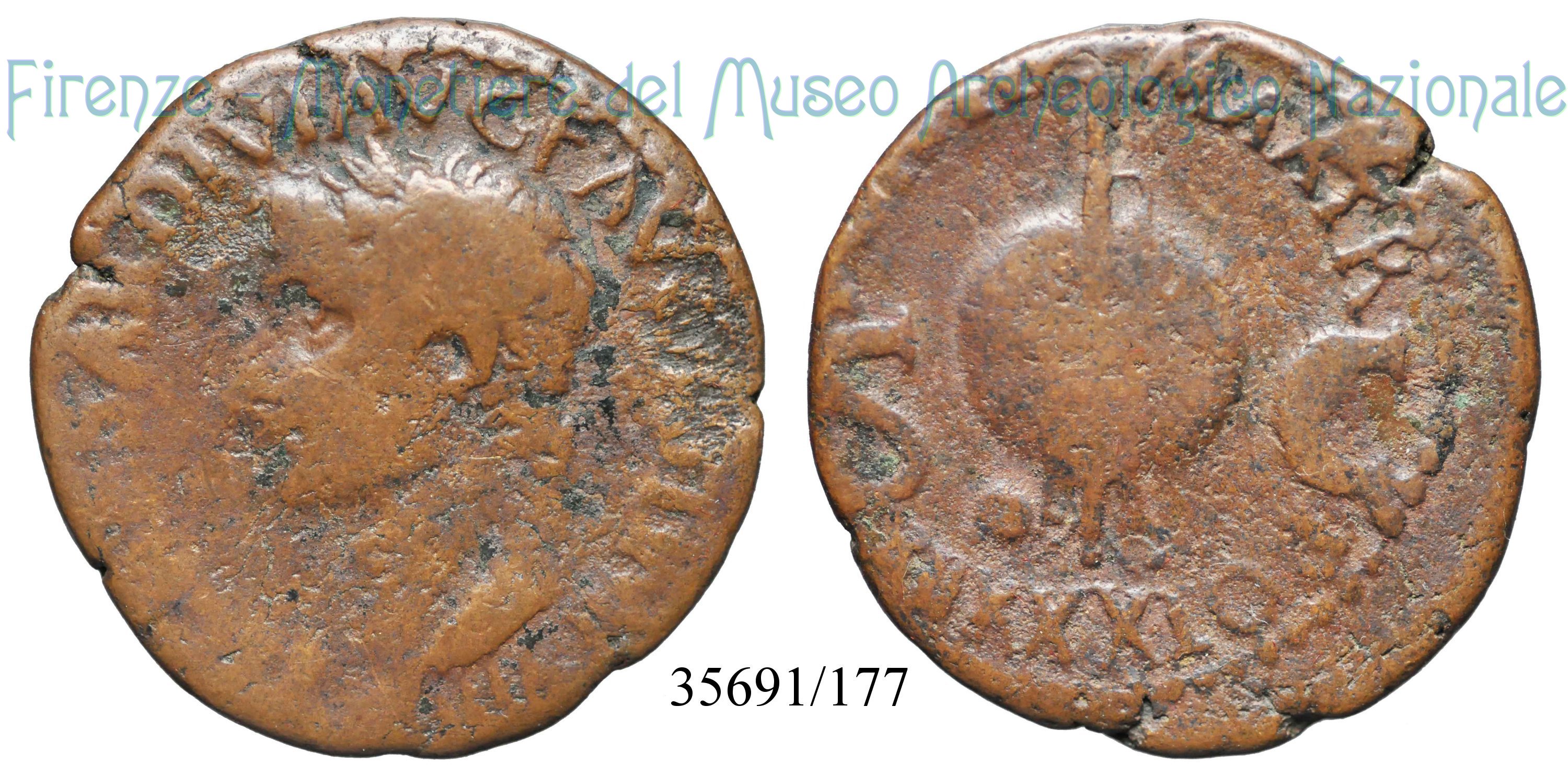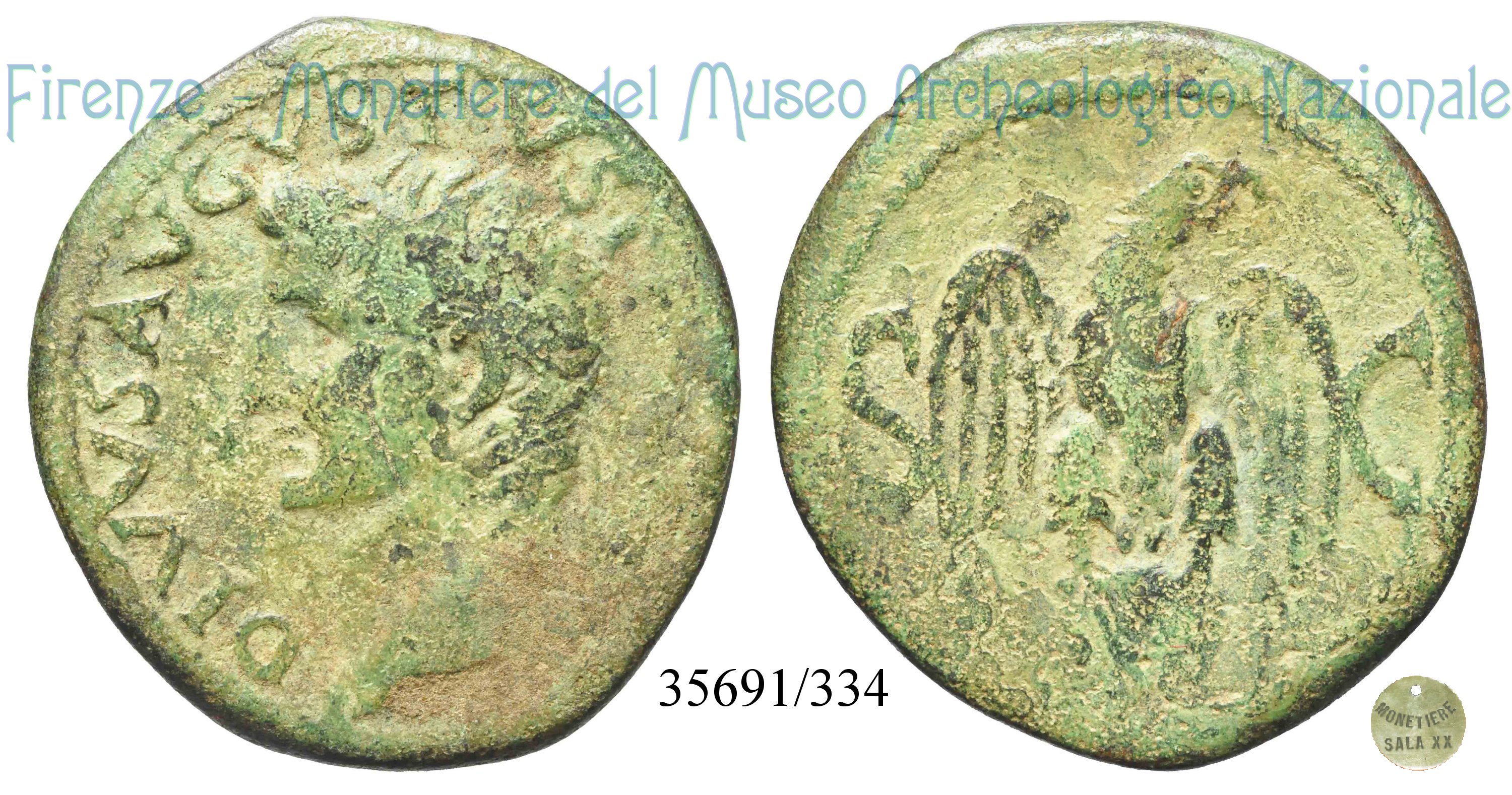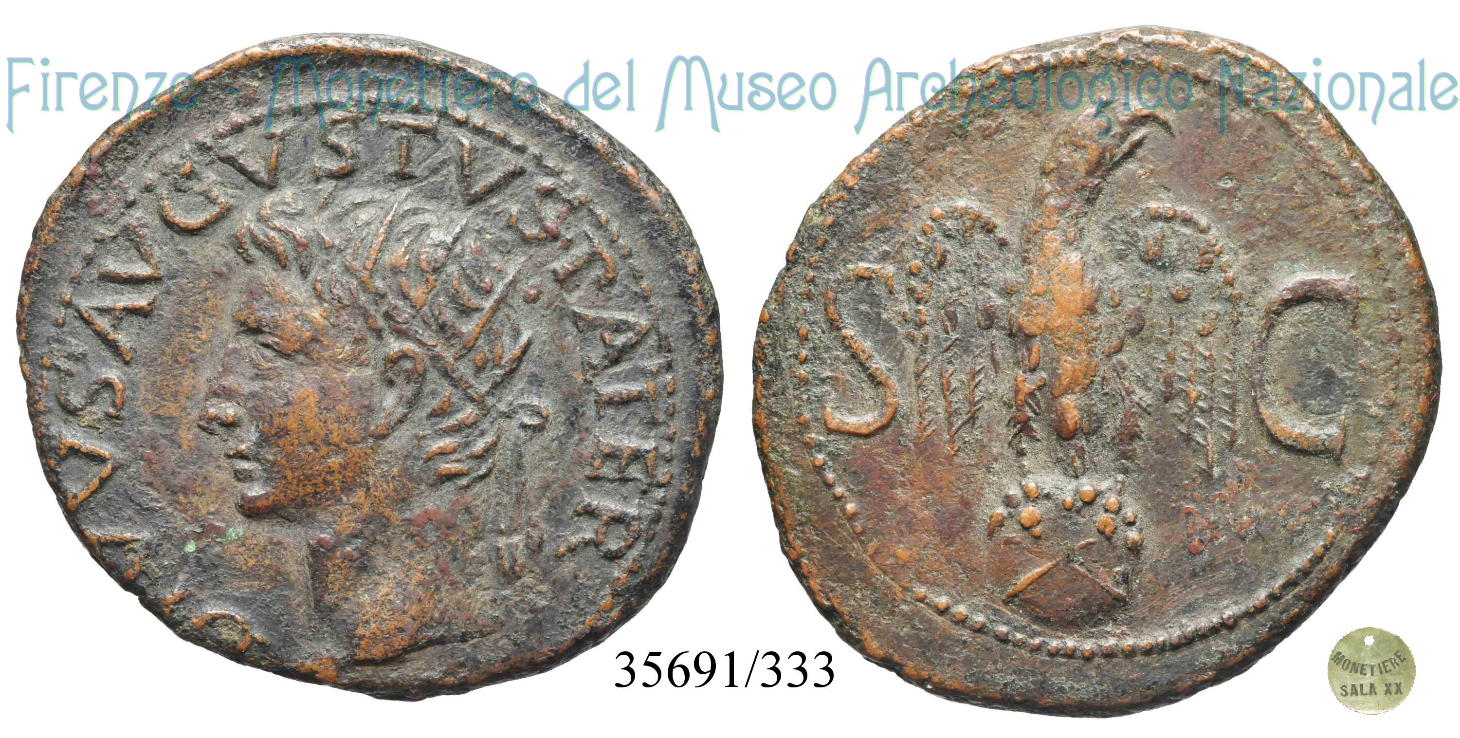 Aquila su globo - RIC 82 (22 d.C. - Roma) D/ DIVVS AVGVSTVS PATER R/ grande S C RIC I, 82 (= asse) (B) | Monetiere Archeologico Firenze | Sat 8/02/14 - 23:13 | ||