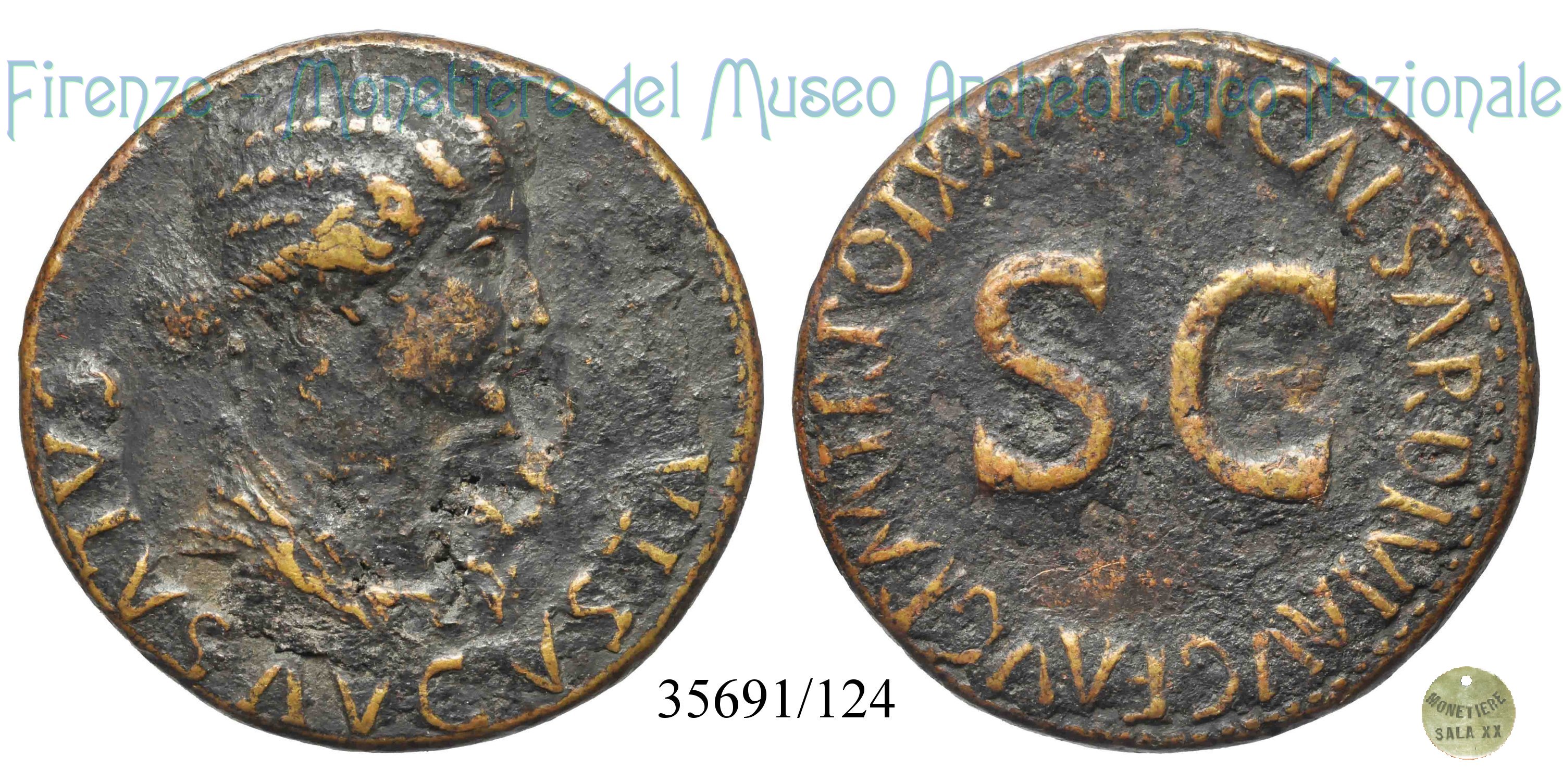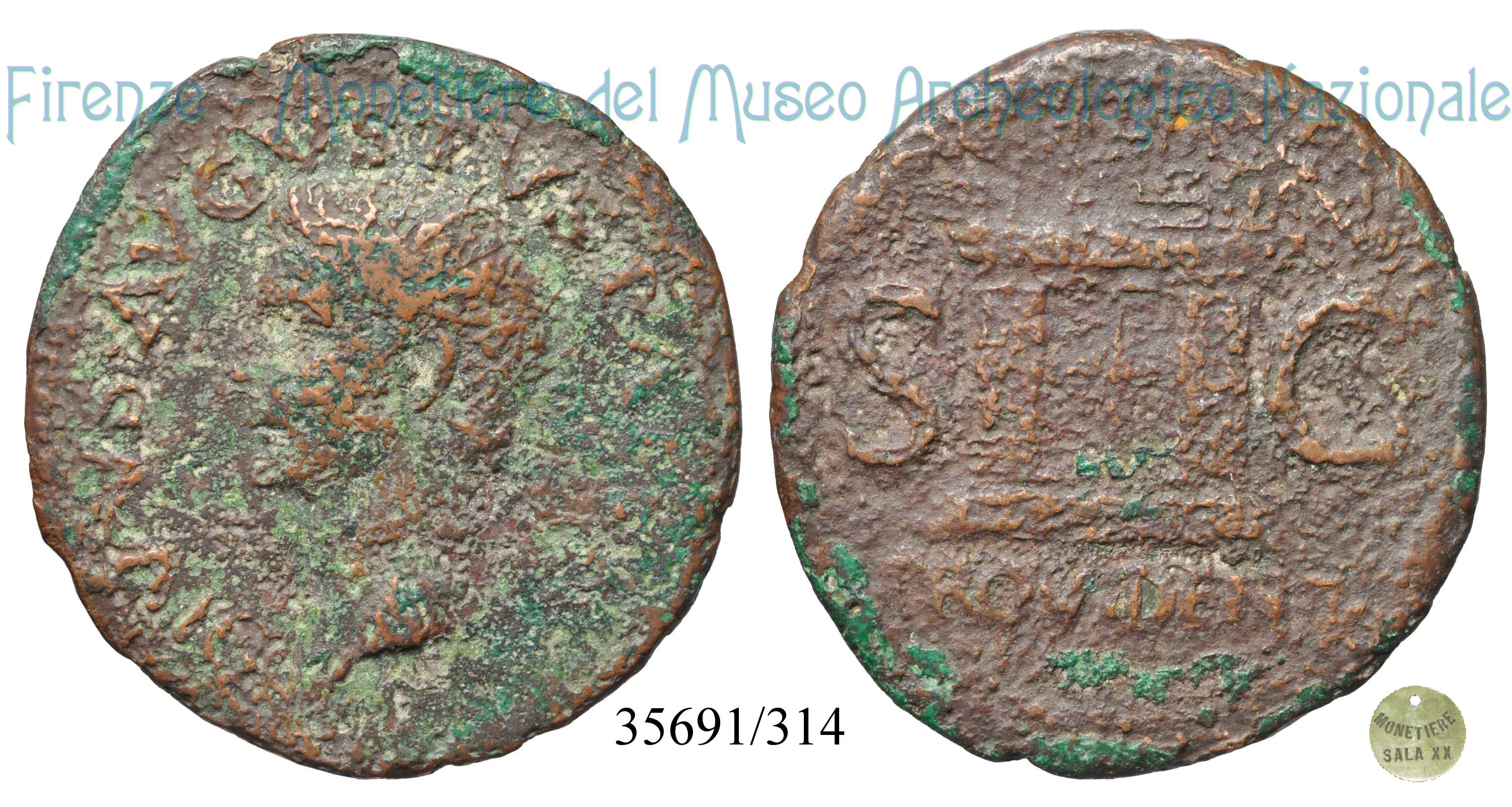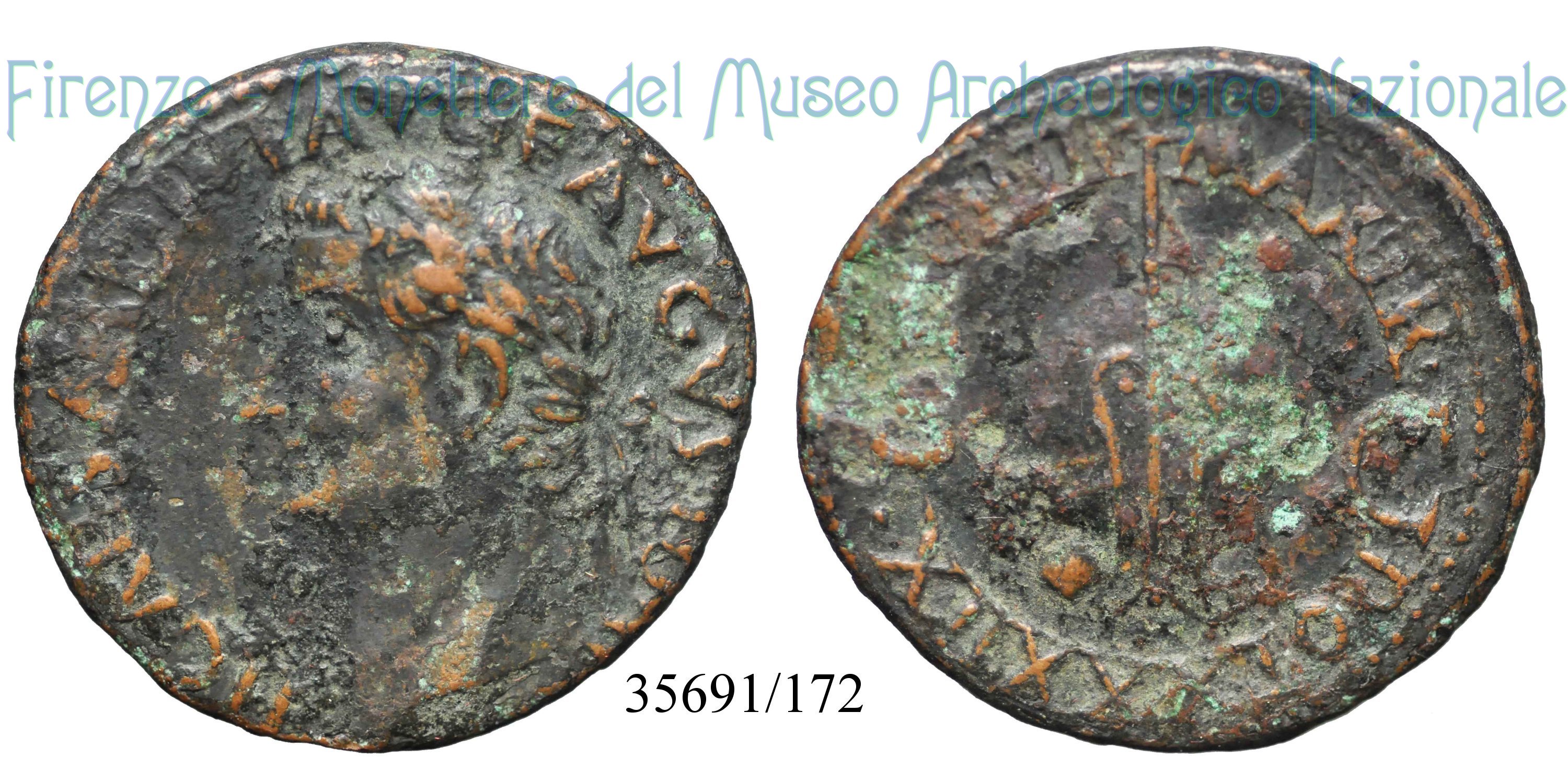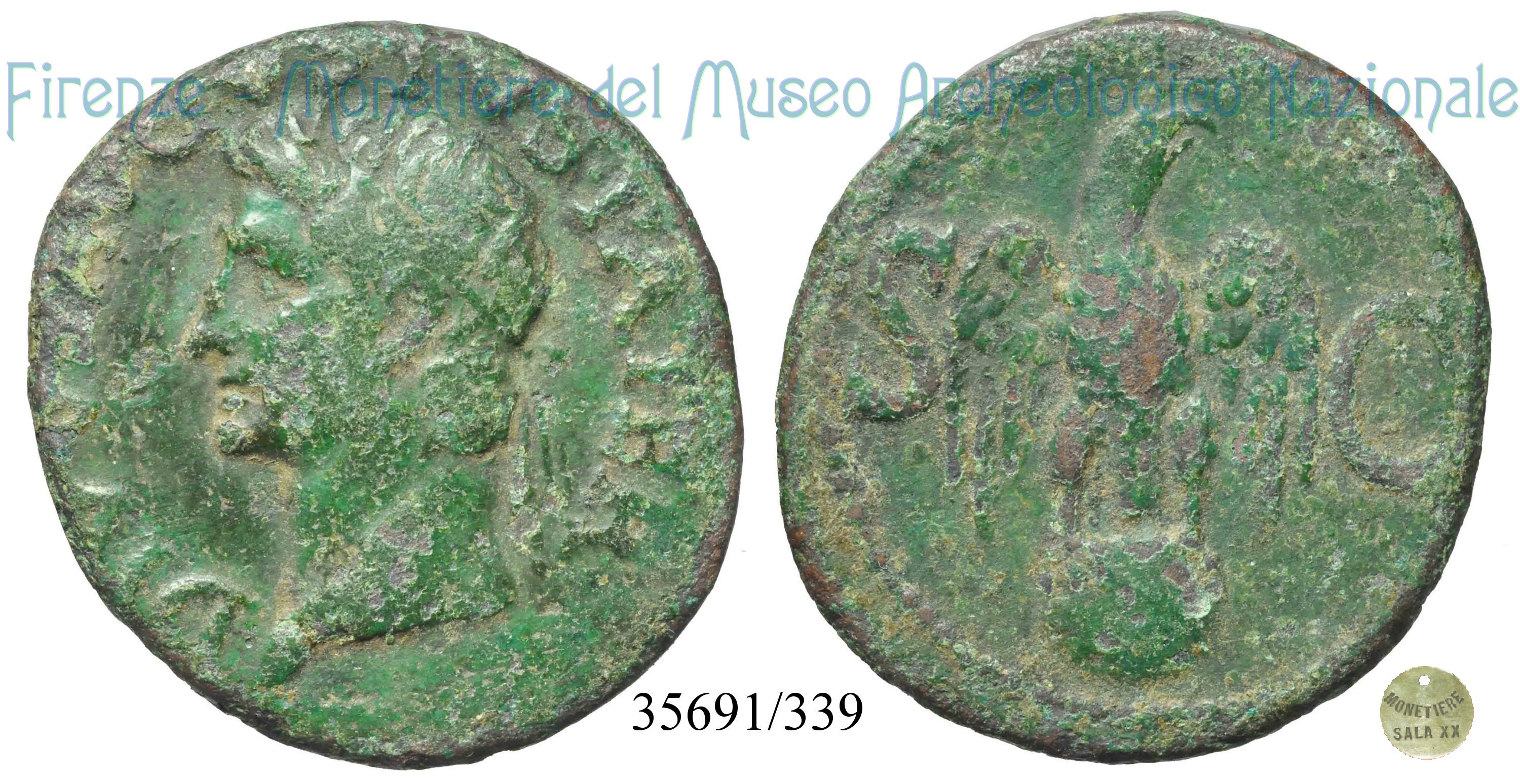 Aquila su globo - RIC 82 (22 d.C. - Roma) D/ DIVVS AVGVSTVS PATER R/ grande S C RIC I, 82 (= asse) (B) | Monetiere Archeologico Firenze | Sat 8/02/14 - 23:13 | ||