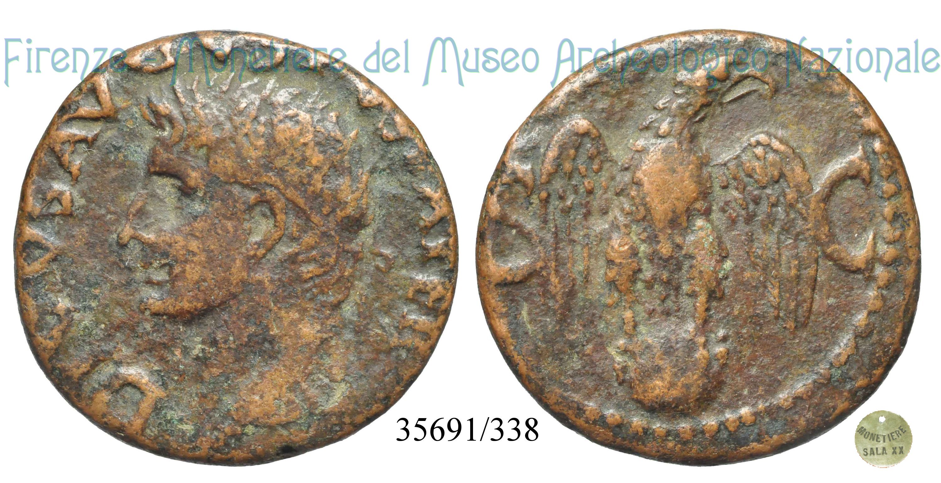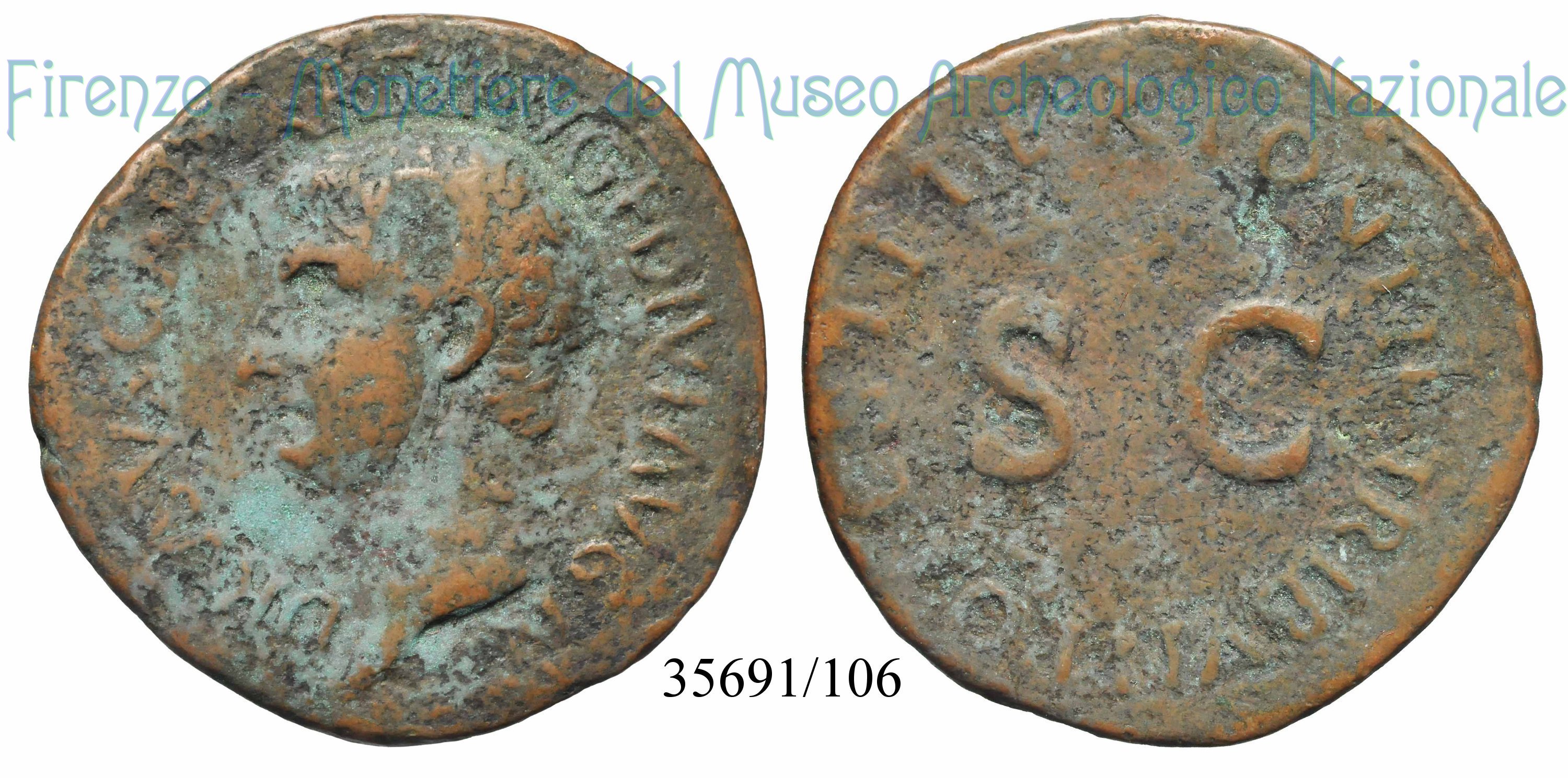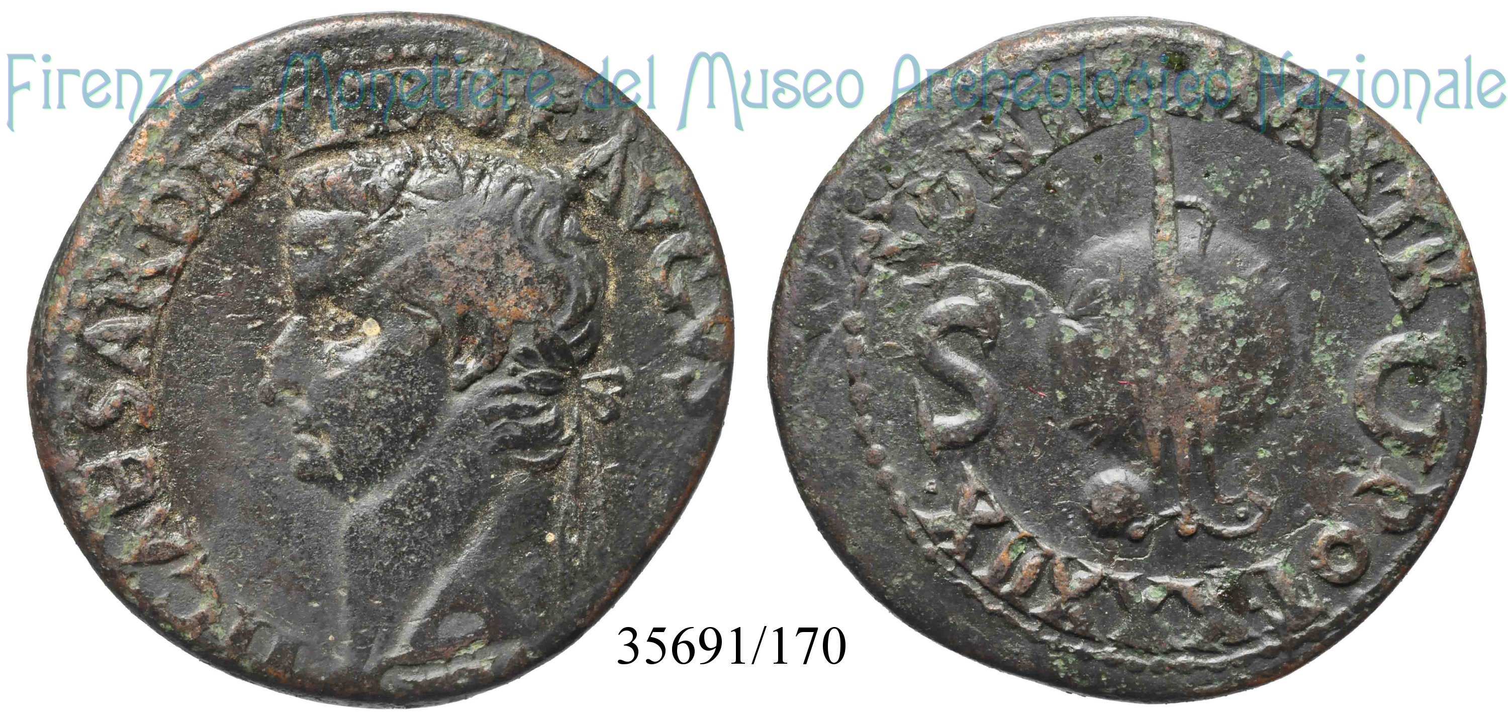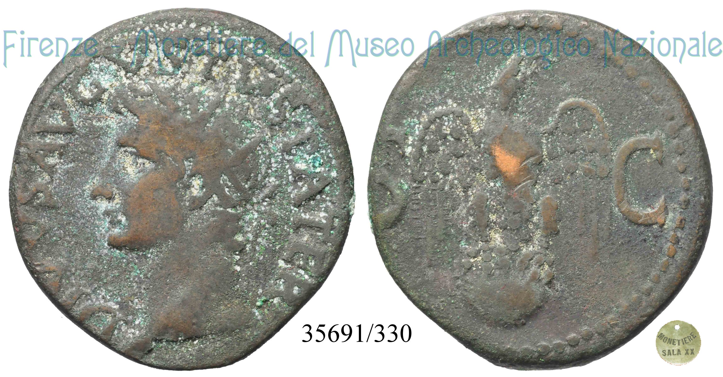 Aquila su globo - RIC 82 (22 d.C. - Roma) D/ DIVVS AVGVSTVS PATER R/ grande S C RIC I, 82 (= asse) (B) | Monetiere Archeologico Firenze | Sat 8/02/14 - 23:13 | ||