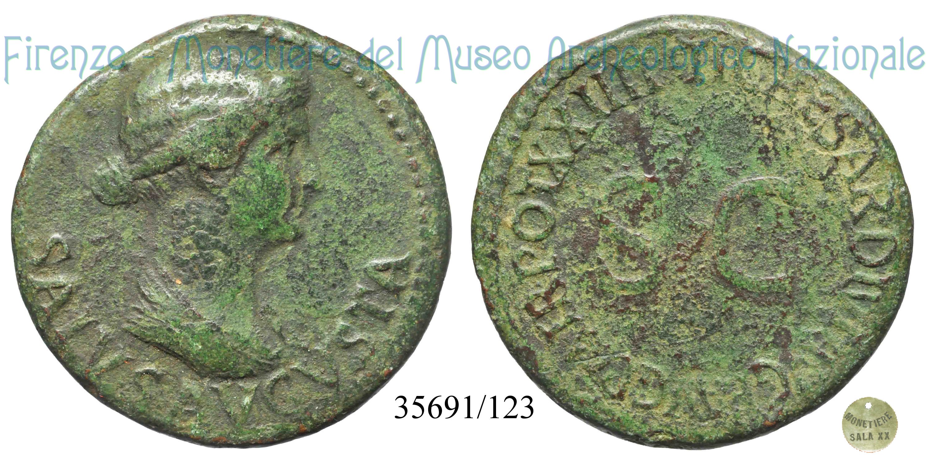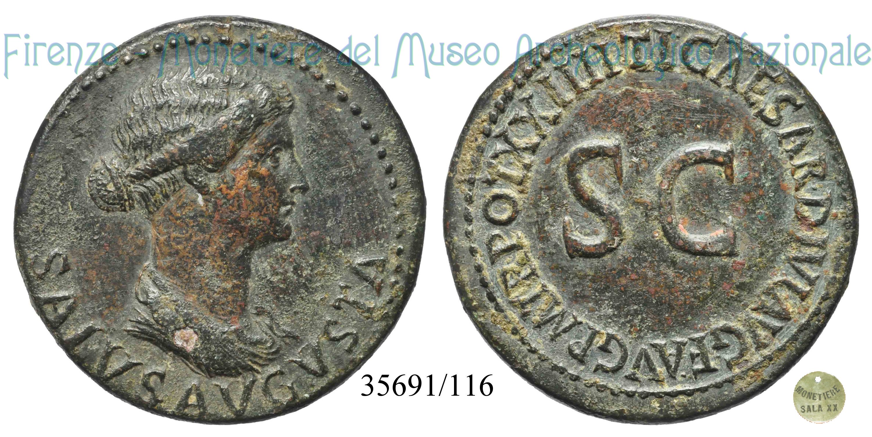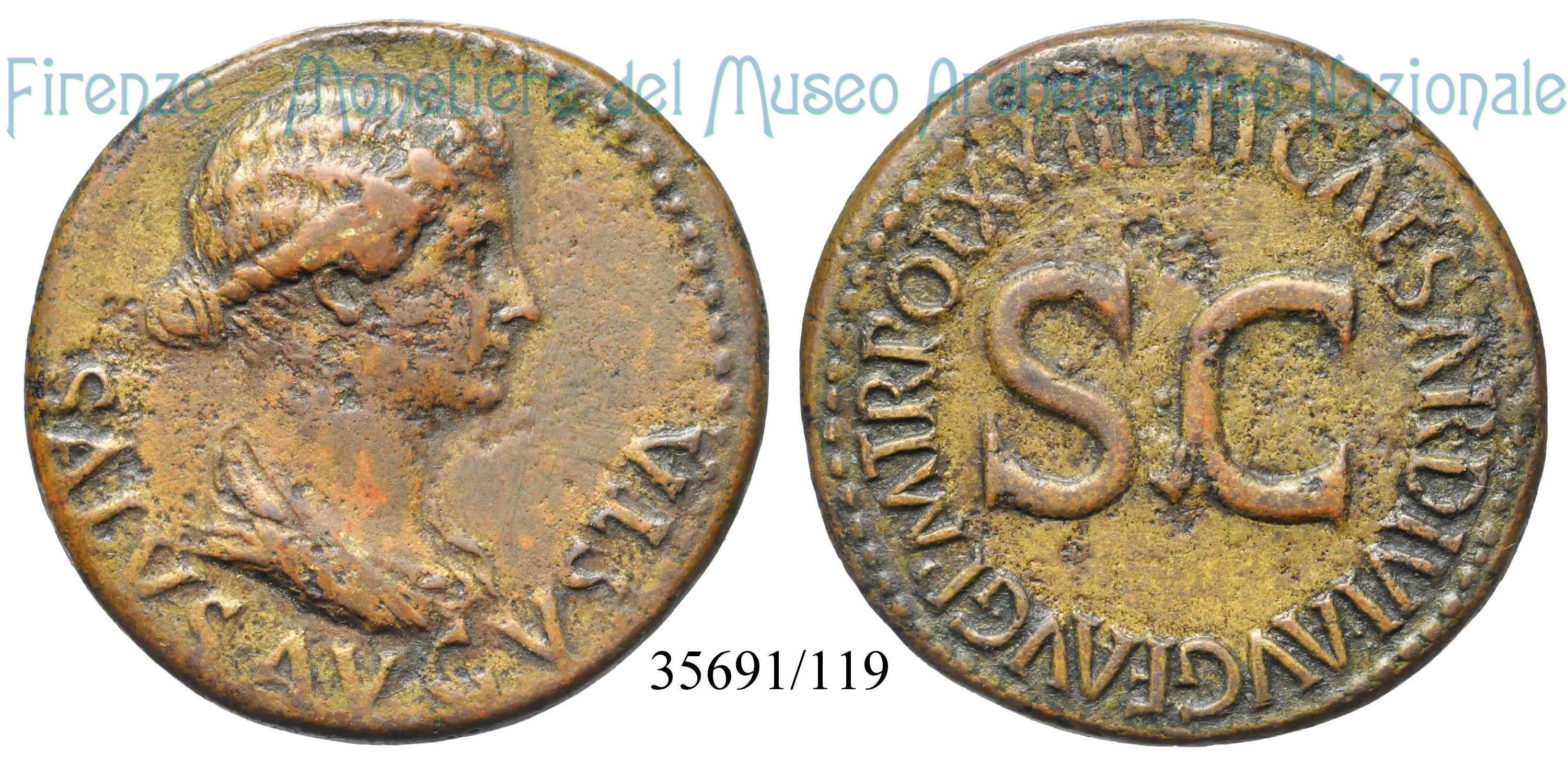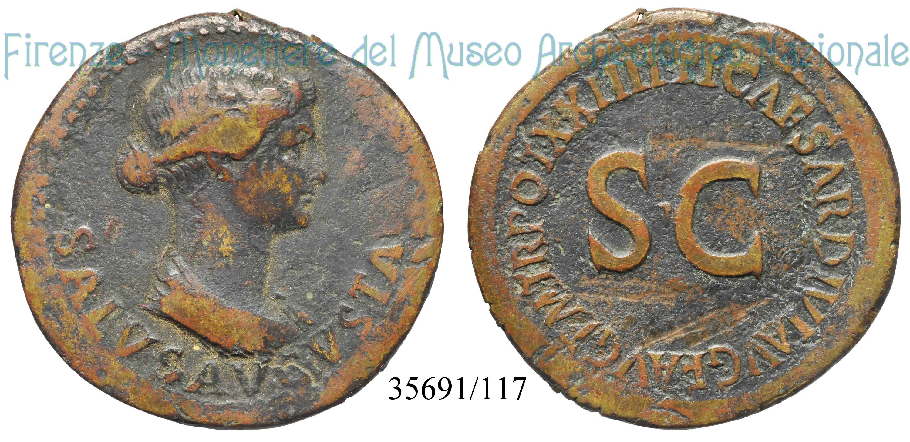 TI CAESAR DIVI AVG F AVG TR POT XXIIII S C (22-23 d.C. - Roma) D/ SALVS AVGVSTA R/ TI CAESAR DIVI AVG F AVG TR POT XXIIII S C RIC I, 47 (B) | Monetiere Archeologico Firenze | Sat 8/02/14 - 22:25 | ||