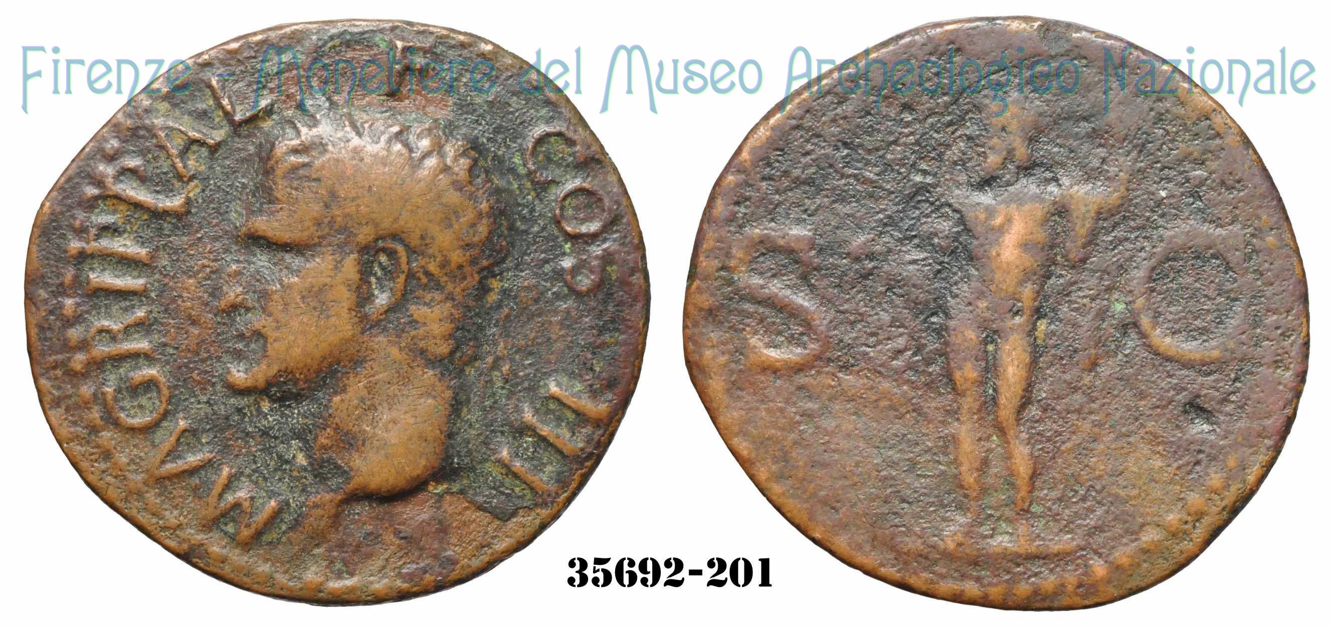 Nettuno con delfino - RIC 58 (37-41 d.C. - Roma) D/ M AGRIPPA L F COS III R/ SC RIC, I, 58 | Monetiere Archeologico Firenze | Mon 19/08/13 - 12:19 | ||