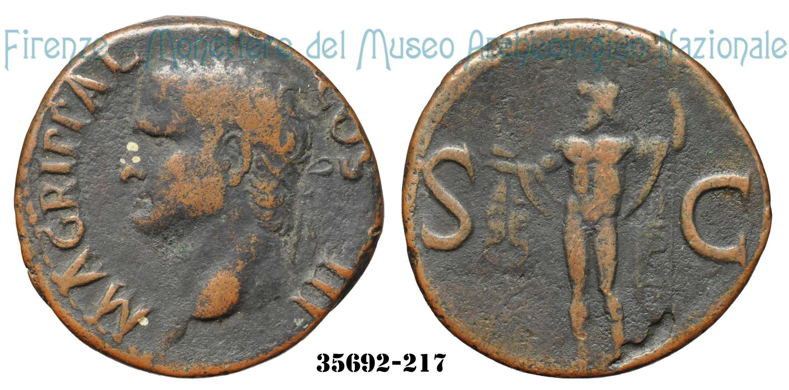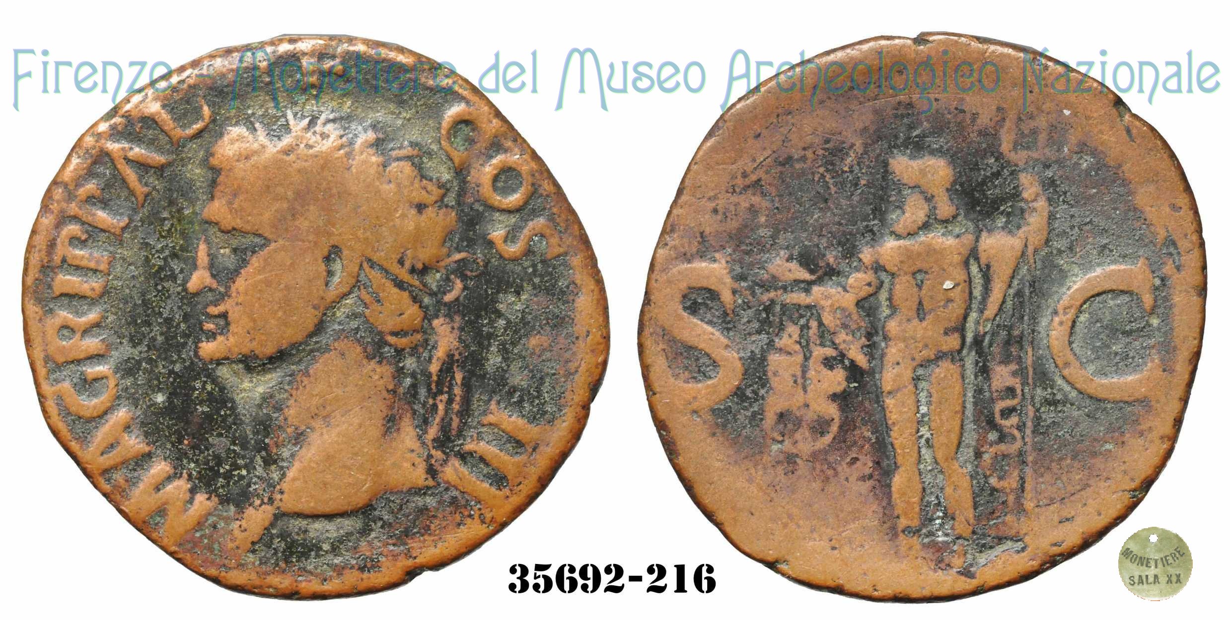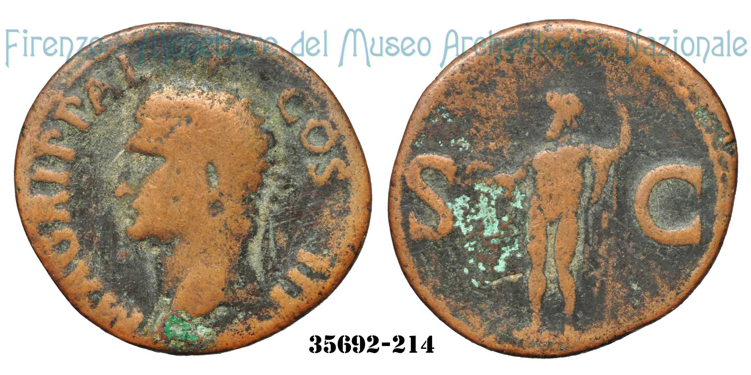 Nettuno con delfino - RIC 58 (37-41 d.C. - Roma) D/ M AGRIPPA L F COS III R/ SC RIC, I, 58 | Monetiere Archeologico Firenze | Mon 23/09/13 - 23:49 | ||