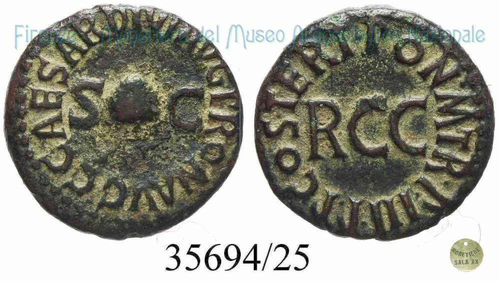 PON M TRP IIII PP COS TERT - RIC 52 (40-41 d.C. - Roma) D/ C CAESAR DIVI AVG PRON AVG R/ PON M TRP IIII PP COS TERT RIC, I, 52. | Monetiere Archeologico Firenze | Mon 29/07/13 - 13:59 | ||