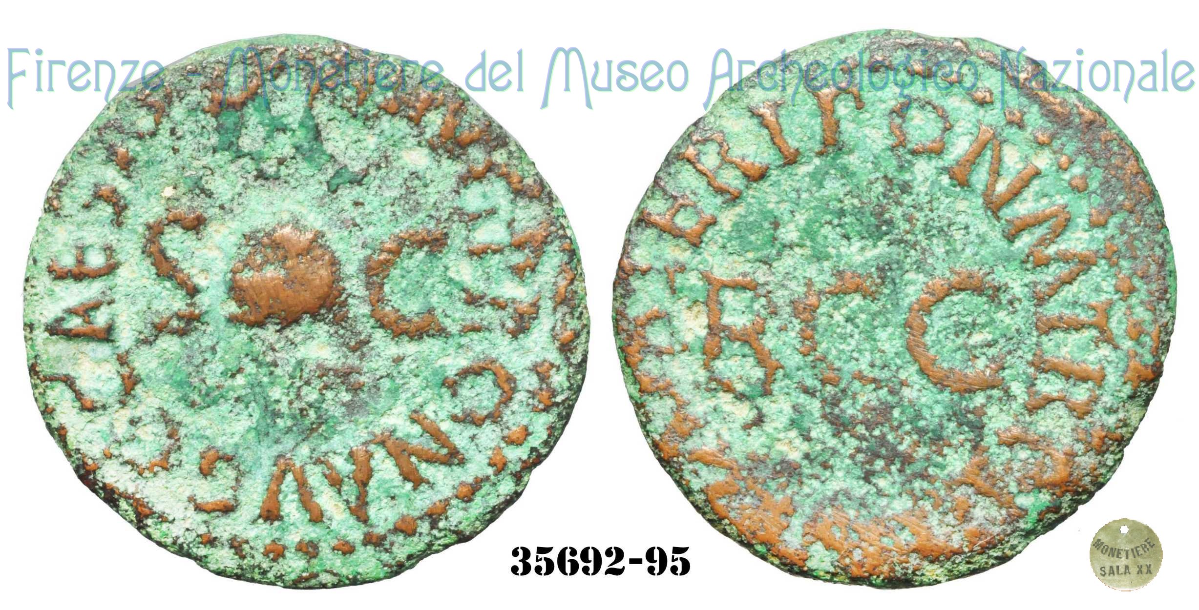 PON M TRP IIII PP COS TERT - RIC 52 (40-41 d.C. - Roma) D/ C CAESAR DIVI AVG PRON AVG R/ PON M TRP IIII PP COS TERT RIC, I, 52; Migliarini 427. | Monetiere Archeologico Firenze | Mon 29/07/13 - 14:03 | ||