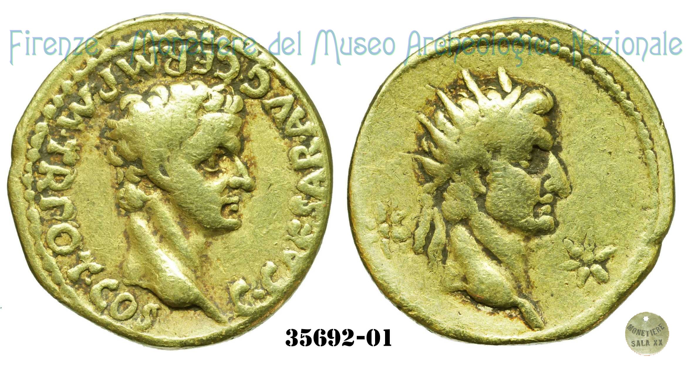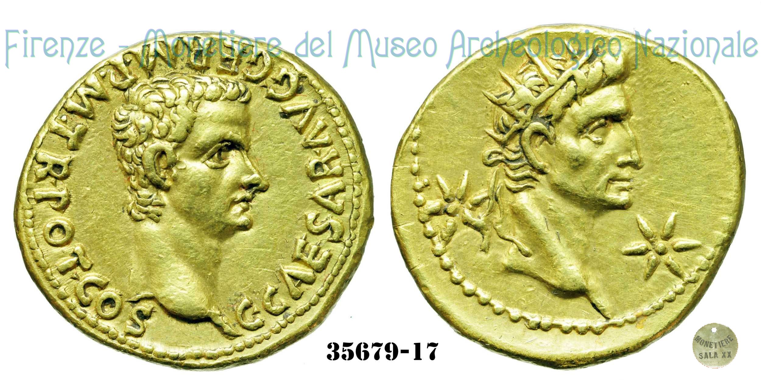 Testa radiata a destra del Divo Agusto tra due stelle - Ric 1 (37-38 d.C. - Lugdunum) D/ C CAESAR AVG GERM PM TR POT COS R/ Senza legenda Ric, I, 1 | Monetiere Archeologico Firenze | Sat 29/06/13 - 16:17 |