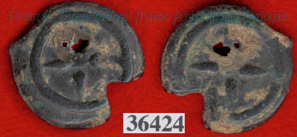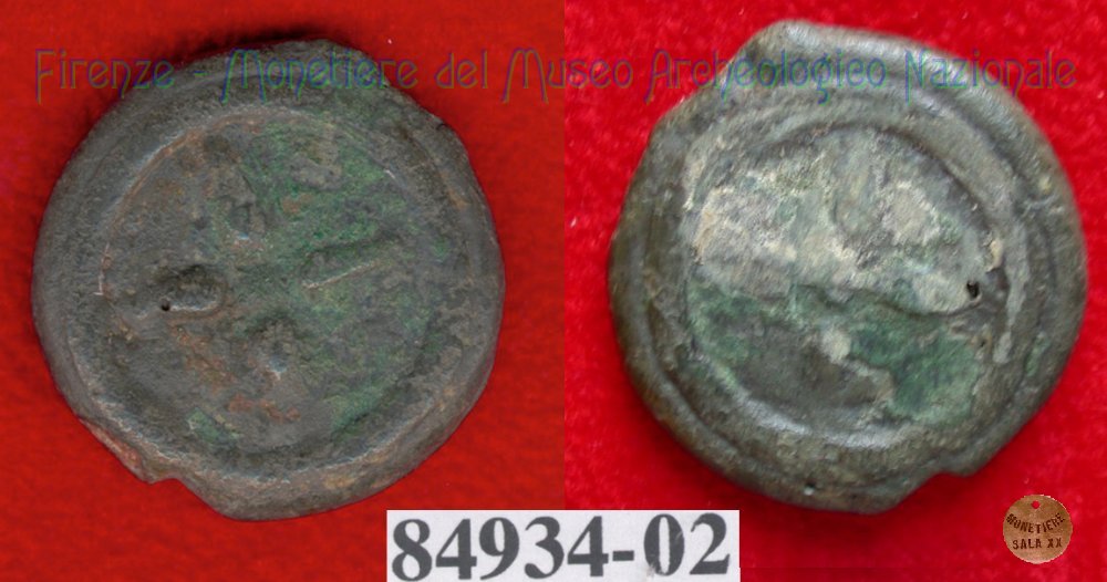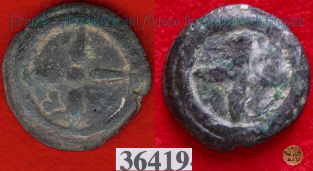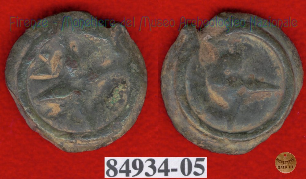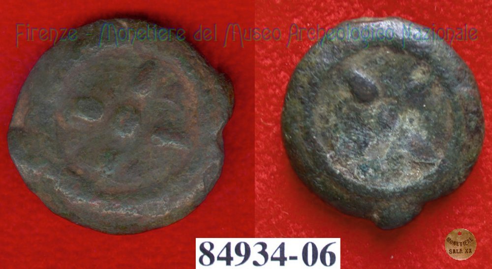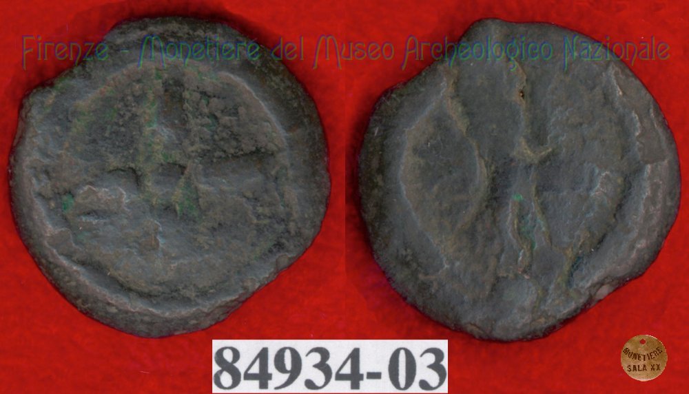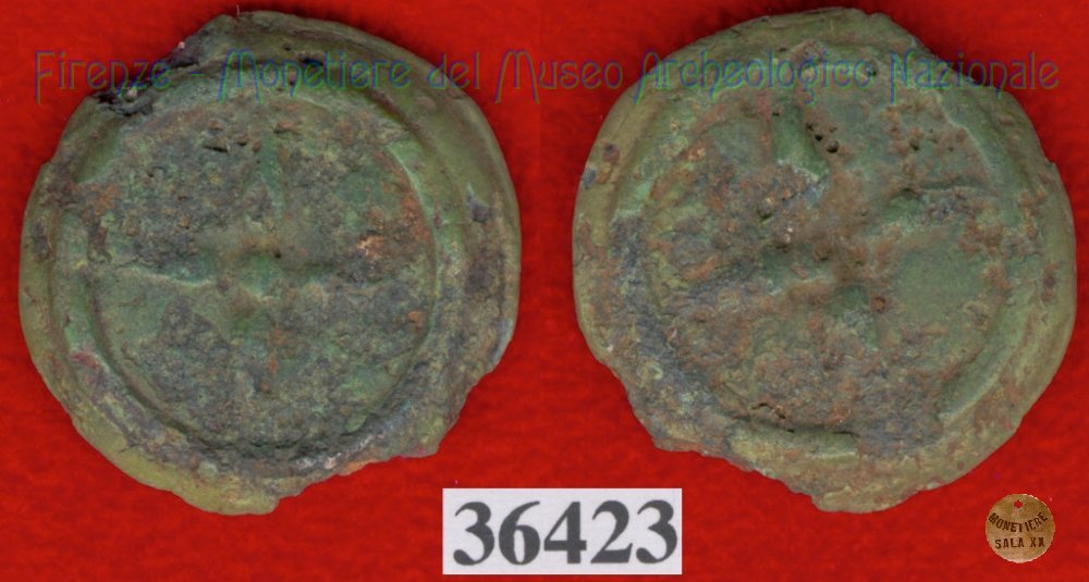 Ruota a 4 raggi / ruota a 4 raggi (HN Italy 56f) (299-200 a.C. - Etruria Sett. Interna) SNG Firenze, 970 Entrambe le facce | Monetiere Archeologico Firenze | Thu 29/04/10 - 22:16 | ||